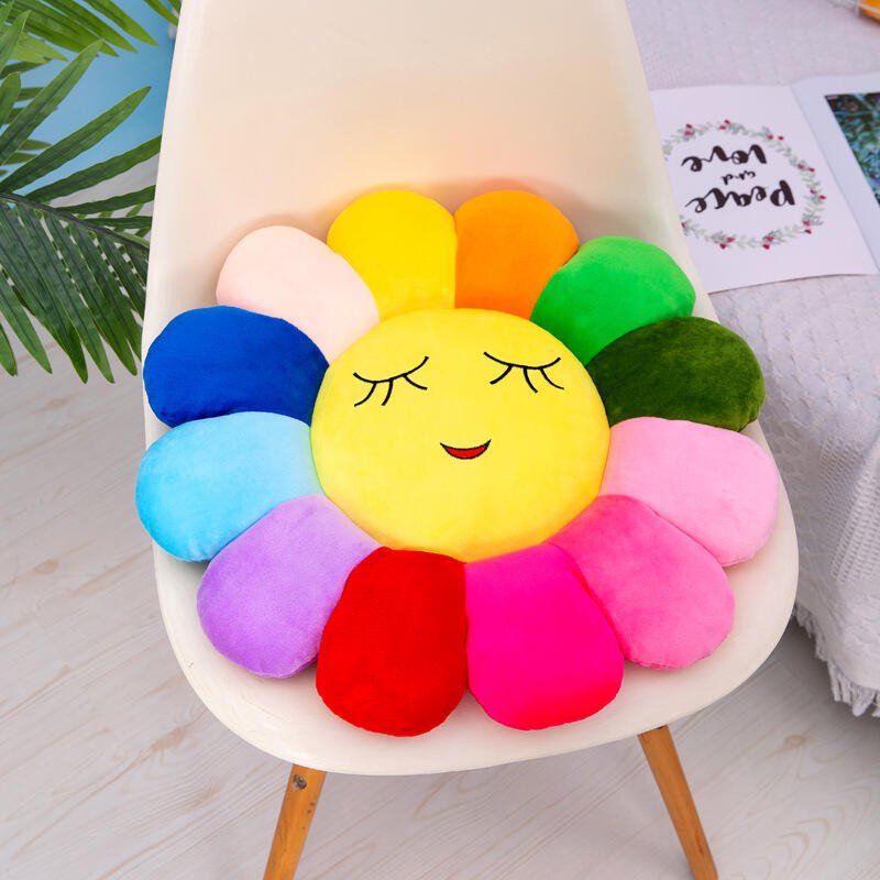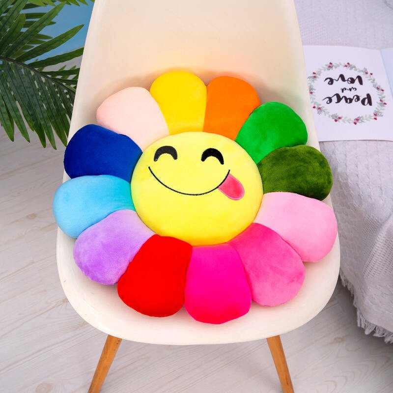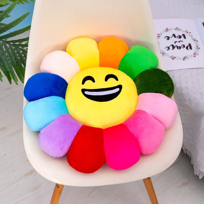 Multi color sunflower shape Emoji face pillow