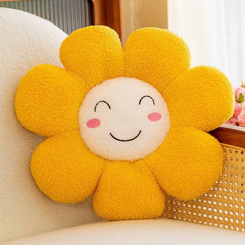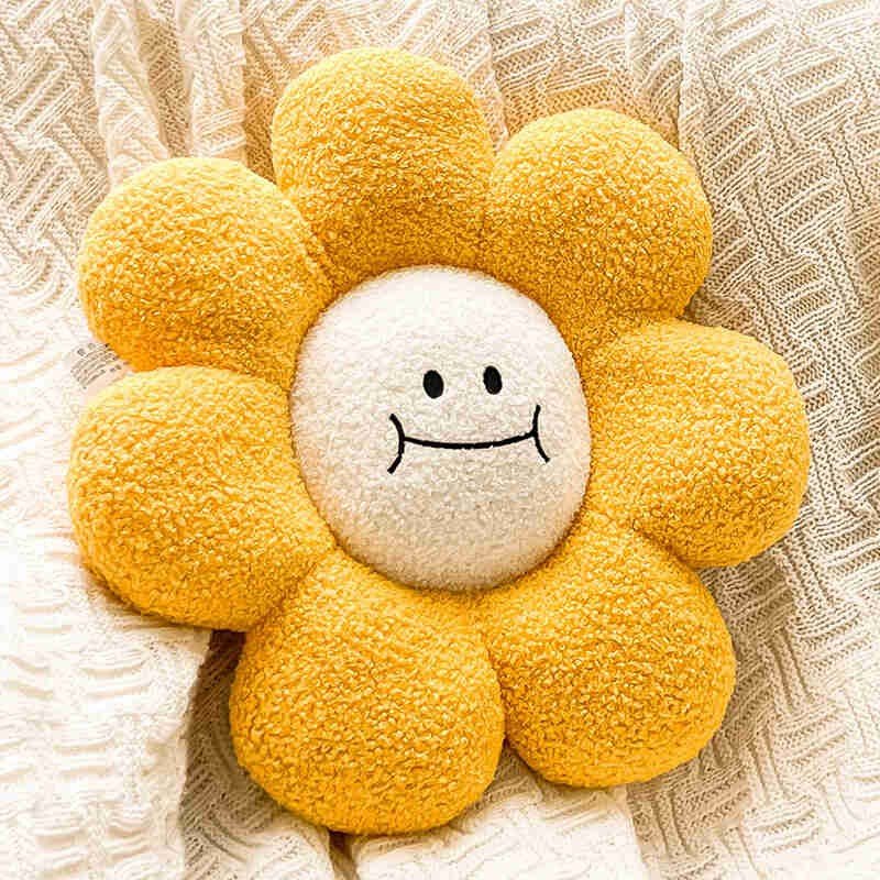 Smiling Face White Daisy Flower Toy Pillow Plush Sunflower Chair Cushion