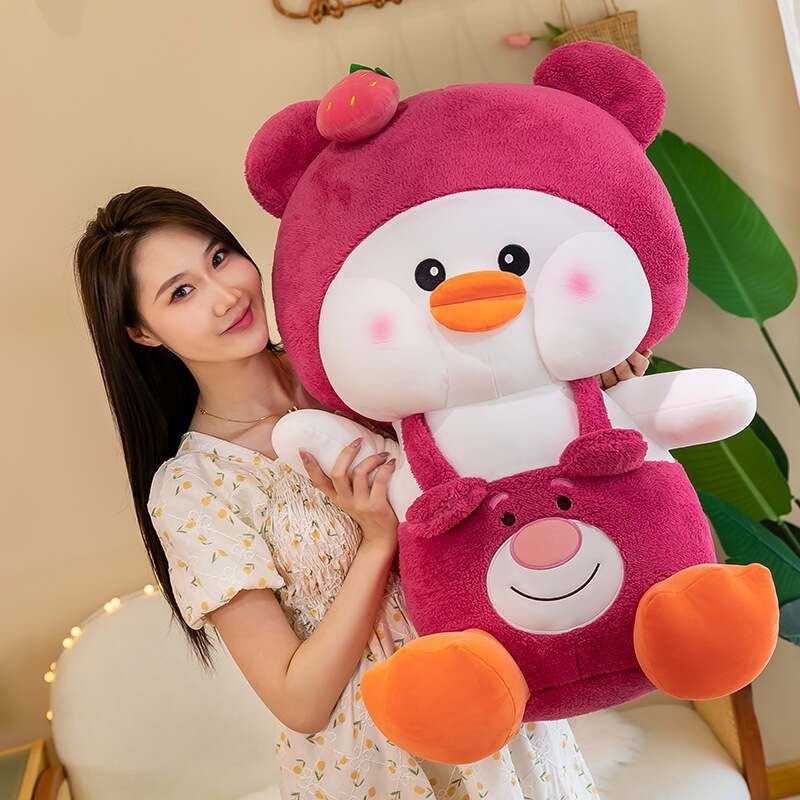 Lovely Strawberry Duck Doll Plush Stuffed Animals Cute Duck Toy