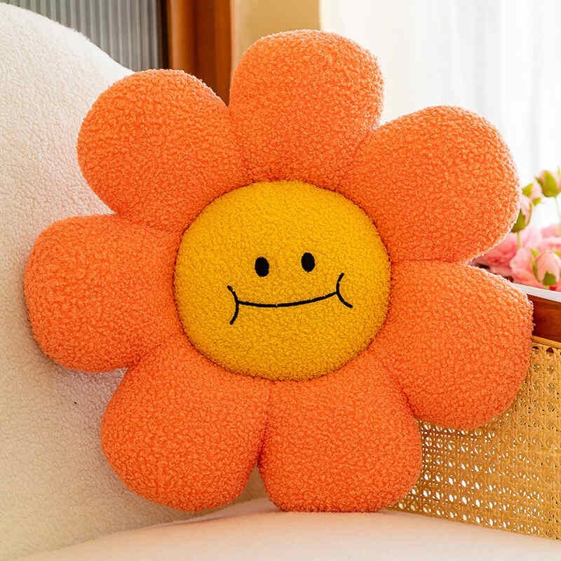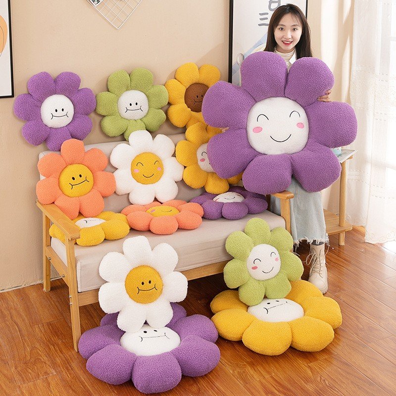Smiling Face White Daisy Flower Toy Pillow Plush Sunflower Chair Cushion